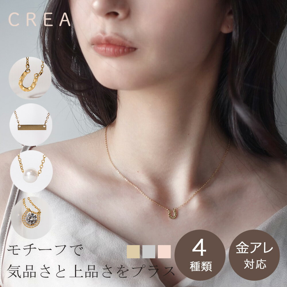 4モチーフ ペンダント ネックレス チェーン レディース 馬蹄 ホースシュー ジルコニア チョーカー パール 真珠 一粒パール 金属アレルギー 金アレ対応 つけっぱなし OK 316L サージカル ステンレス クレアジュエリー crea jewelry