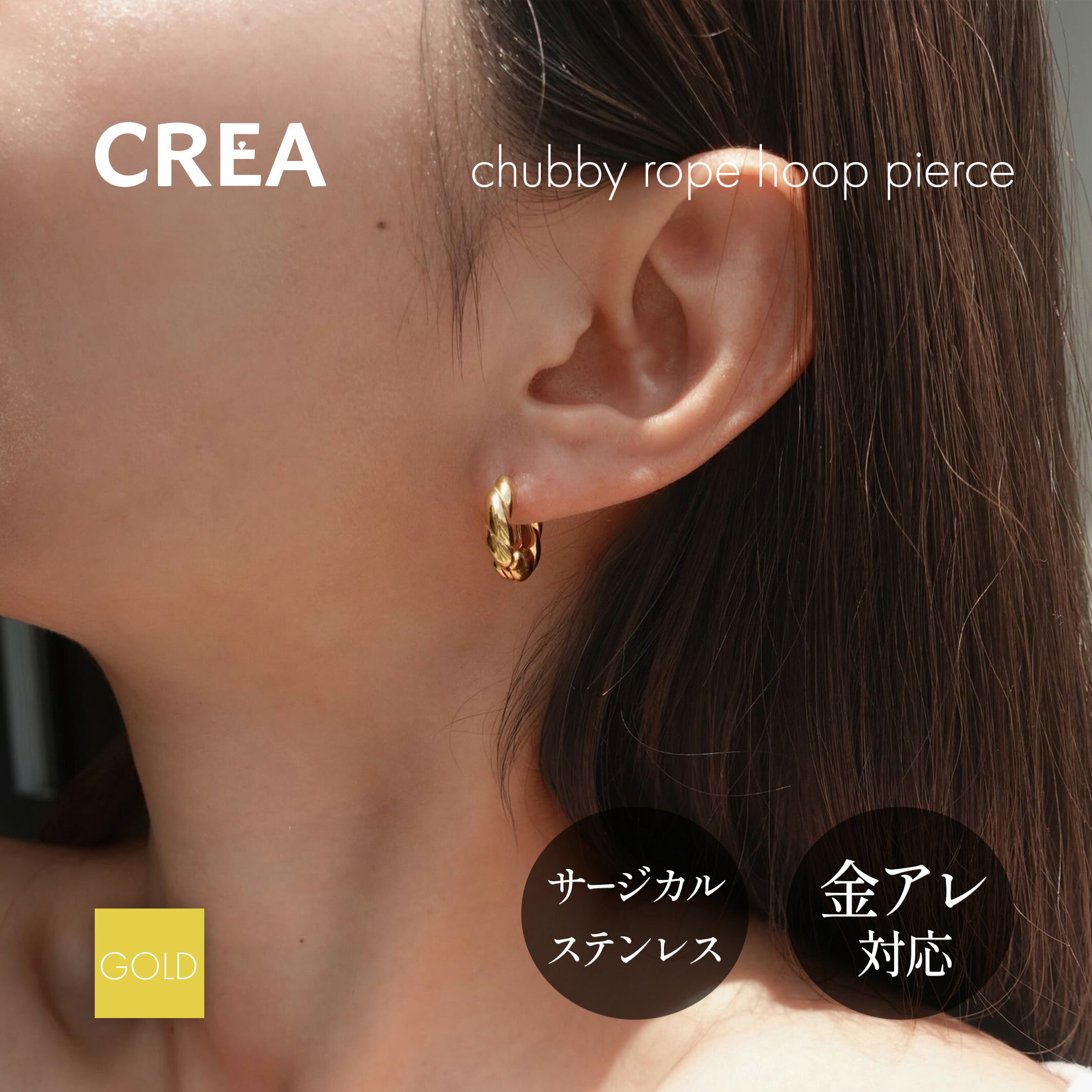 チャビーロープフープピアス|フープ ピアス ボリューム ぷっくり サージカル ステンレス レディース シンプル 仕事 おしゃれ カジュアル つけっぱなし 金アレ 金属アレルギー 対応 316L クレアジュエリー CREA jewelry 変色 しづらい サビに強い 大人 可愛い 高見え