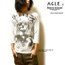 【在庫限り!!】七分袖 Tシャツ メンズ 7分袖 スカル プリント ドクロ レディース 春 秋 コラボ イラスト 骸骨 ロック パンク ビジュアル系 衣装 バンド AGLE X BASE De CRICROSS ユニセックス【メール便送料無料】