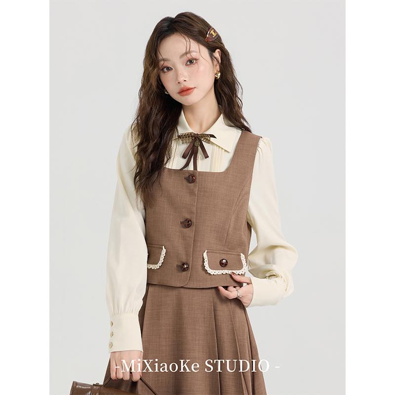 シャツ ベスト スカート レディース おしゃれ ファッション カレッジ カジュアル フレンチ レトロ 秋 スタイリッシュ ジレ エレガント クラシカル
