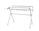 布団の枚数に合わせて、伸縮できる大容量タイプのふとん干しです。ダブルバーで、空間ができるため風通しがアップします。衣類が片寄らない、ハンガー固定パーツ付きです。使用しないときは、折りたたんで収納できます。ステンレス巻きスチールパイプを採用しているので、丈夫でサビに強く安心してお使いいただけます。工具不要で、組み立てが簡単です。【仕様】収納時サイズ(約):1330×140×1440mm耐荷重(約):全体20kg