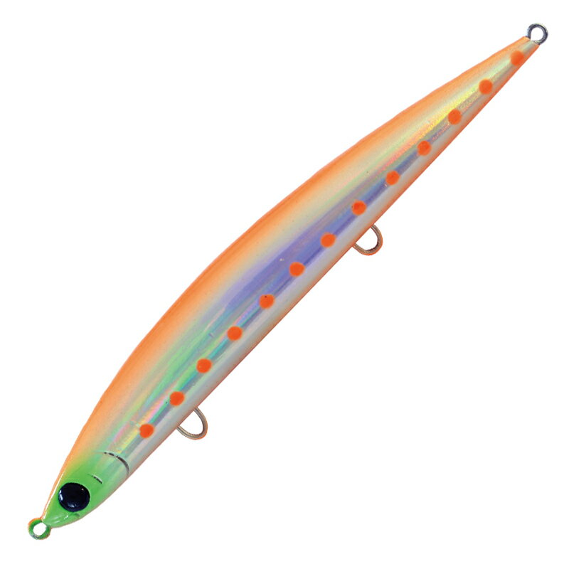 仕様/規格●サイズ:140mm●ウェイト:40g●タイプ:シンキング●フック:#4●カラー:CTI キャロットイワシサイズ140mmカラーCTI キャロットイワシ商品説明●モンスター対応のアスリート!!●サーフゲームでのフラットフィッシュを強く意識して作られたシンキングペンシルだが、テストを重ねる中で青物やマダイといった魚にもそのアクションが有効であることがわかった。そこで開発に着手したのがこのアスリート14SSP。●強靱なあごの力を持つマダイや大型青物、座布団ヒラメ、ランカーシーバスなどをメインターゲットとするために貫通ワイヤーを搭載し、モンスター級の魚たちと真っ向勝負できるものが誕生した。サーフのみならず磯からの使用も意識し、アスリート12SSPよりも若干重心を前方にして浮き上がりを抑えているが、飛行姿勢は変わらず安定し、メタルジグに匹敵する驚異の飛距離を実現できる。飛距離を稼げることはサーフのみならず磯からの使用でも強い武器になる。アクションはサイズアップしたことによってよりワイドに。大きなS字を描きながらのウォブンロール、さらにリトリーブ速度を上げていくとイレギュラーなアクションも加わり、フィッシュイーターを強烈に刺激する。商品属性●魚種:[ ヒラメ ]●ルアーの種類:[ ソルトウォーター ]特集区分●サーフフィッシングおすすめアイテム関連ワード●釣り具 釣具 つり具ジャンル識別情報:/g1007/g217/g301/m072/※納期表示のご説明はこちら
