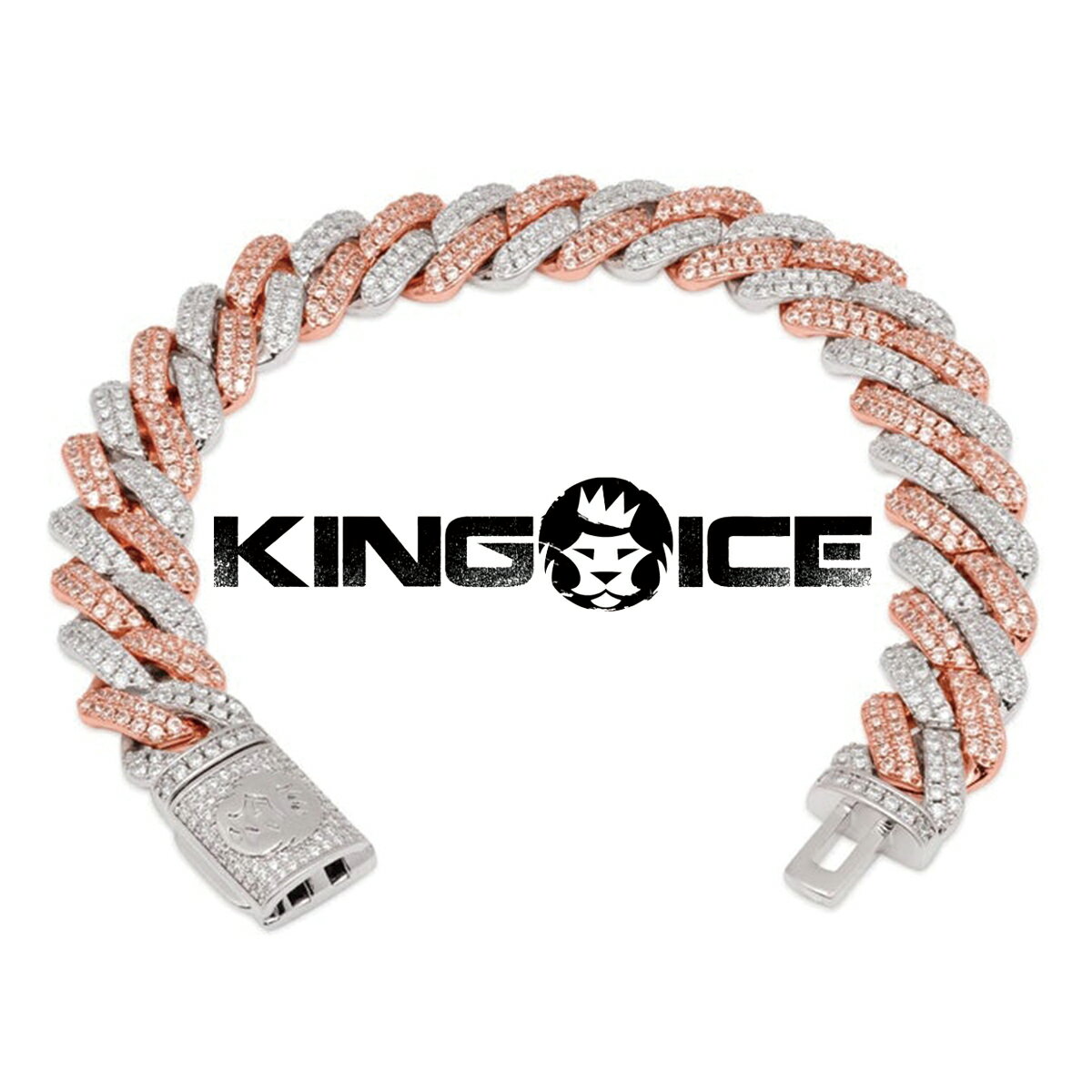 KING ICE キングアイス ブレスレット 12MM ROSE GOLD ICED DIAMOND-CUT MIAMI CUBAN BRACELET 14Kゴールドメッキ ホワイトゴールドメッキ メンズ ブランド 人気[アクセサリー]
