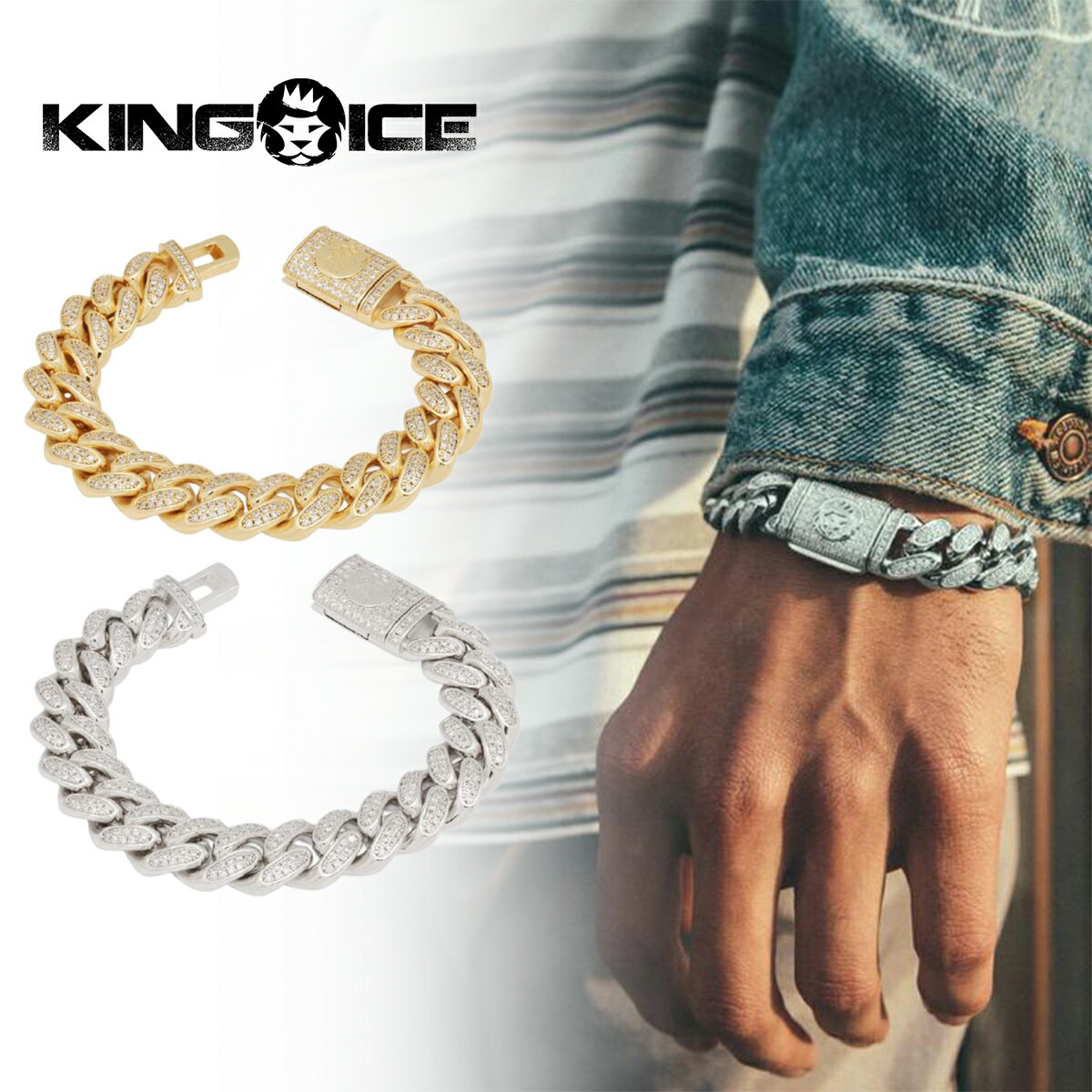 KING ICE キングアイス ブレスレット 15MM ICED MIAMI CUBAN BRACELET 14Kゴールドメッキ ホワイトゴールドメッキ メンズ ブランド 人気[アクセサリー]