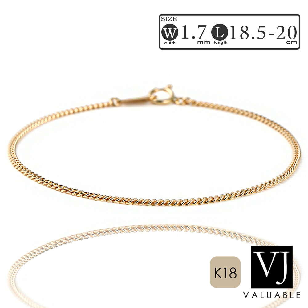 18金 喜平 ブレスレット 2面カット 18k メンズ イエローゴールド 「 New スタンダード Cuban キヘイ チェーン 」 1.7mm 幅 ブレス ※長さ約18.5cm 約20cm 選択[ K18 アメリカ ラギット ジュエリー マイアミ キューバン 男性 定番 細い 2mm ブランド 喜平 ]