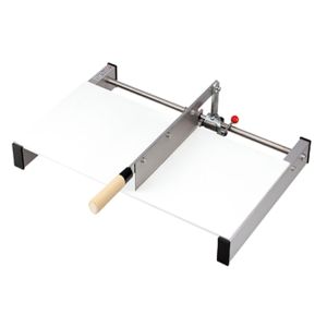 型番3421101 商品説明445×365×高さ160mm / 刃渡225mm刃:SUS-441A / 台:アルミ普通にそばを切る要領でご使用いただくと、麺切り台の包丁が横にスライドして、そばをまっすぐ均一に切ってくれます。 入門者はもちろんのこと、業務用としても最適です。
