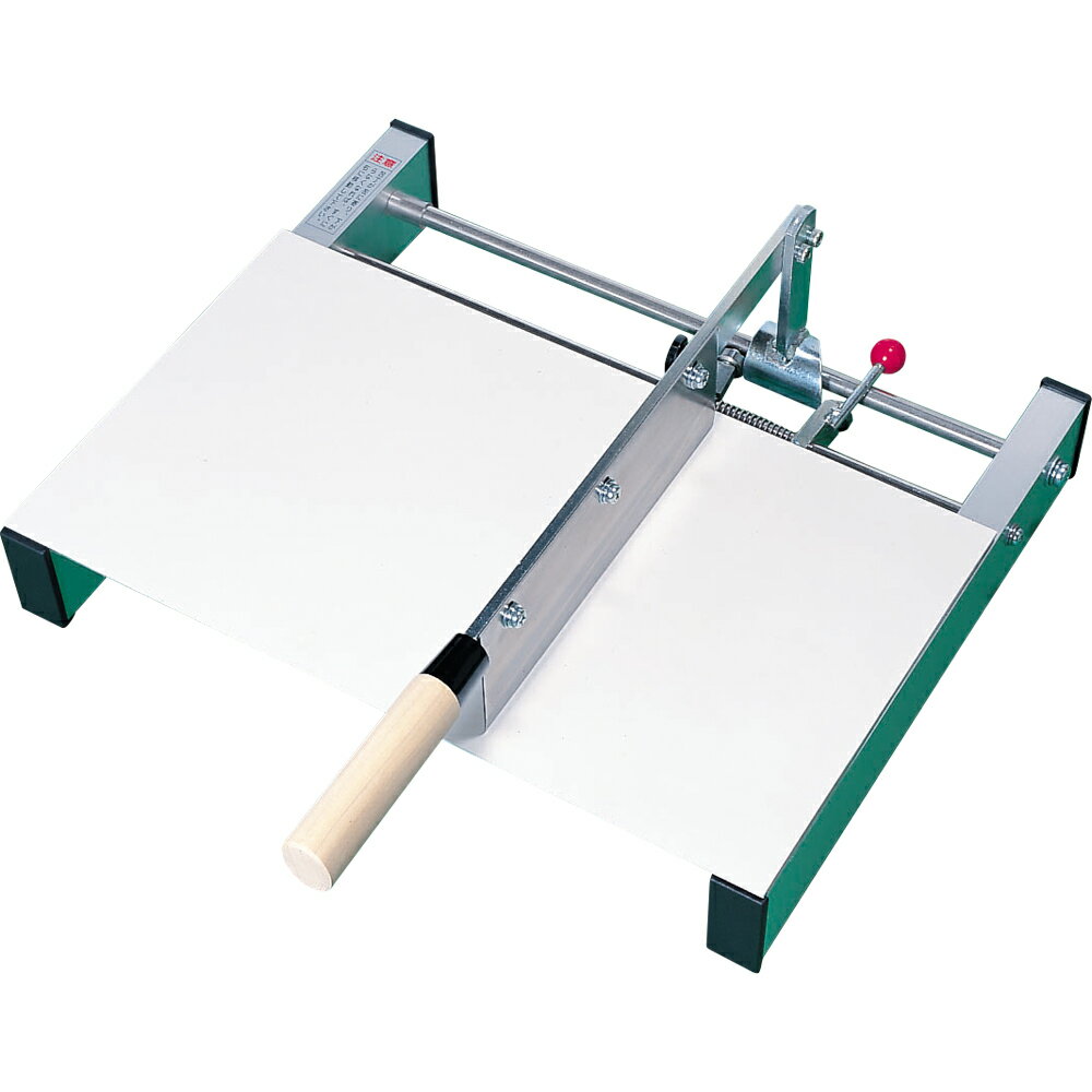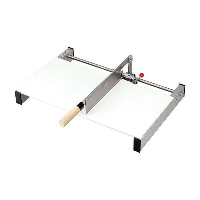 【商品説明】だれでも簡単に使え、麺切の仕上げもきれいにできます!■誰でも簡単に麺切ができ、麺の仕上がりが美しい。包丁は替え刃式です。■自動的に包丁が移動包丁の上げ下げにより自動的に包丁が右から左へ一定の間隔で移動します。■麺の切幅が自在麺の切幅調整板により麺の切幅を約1.5mmから10mm程度まで自在に調整できます。■ゴムシートは食品衛生適合品を使用、何度でも水荒いができます。台もアルミニウム板で衛生的で歪ません。【製品仕様】■商品サイズ:高さ 160×横幅 445×奥行365mm■包丁刃長: 約22