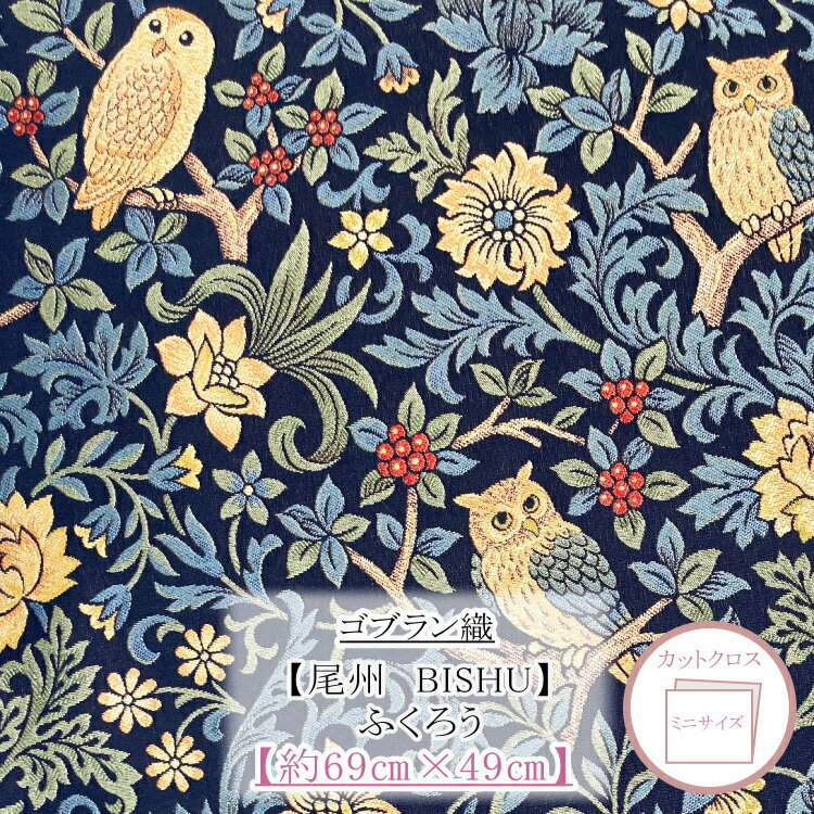 新柄入荷! ゴブラン織 生地 日本尾州産 ふくろう カットクロス 約69cm×49cm slg2303-1-4cutCUT ■ 【C2-6-134-10】U4