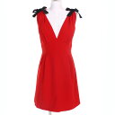 良品△MIUMIU ミュウミュウ MF2364 4KT cady dress 肩リボン ノースリーブ ドレス ワンピース レッド ブラック 38 イタリア製 正規品 レディース【中古】