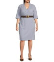 ダナキャラン レディース トップス ワンピース Vネック クレープ プラスサイズ Donna Karan Plus Size Cady Crepe V-Neck Short Sleeve Belted Sheath Dress GLACIAL BLUE ブルー