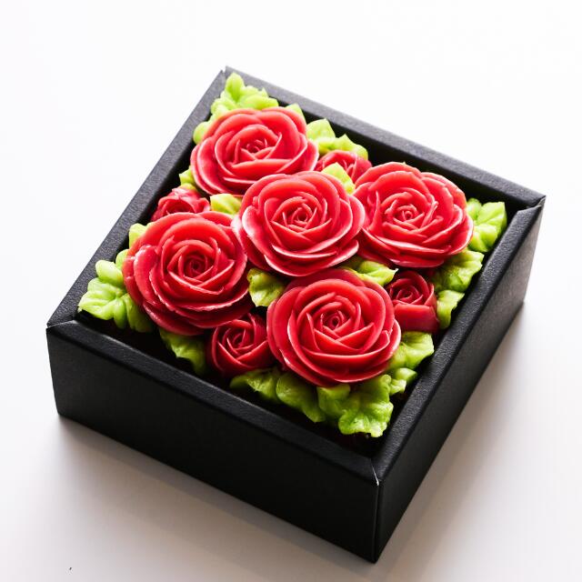 ●【サイズ比較】 "ミニBOX":縦:11cm×横:11cm×高さ:8.5cm "通常BOX":縦:13cm×横:13cm×高さ:9.5cm ●【商品説明】 Anniversaryに相応しい豪華なシャイニングレッドのローズが数多に咲き誇ります。 『結婚記念日』や『格式あるフォーマルな式典等』にも贈れるボックスフラワーケーキに仕上げました。 ※画像のショッピングバッグは別売りです。 ※BOXの見本の蓋はブラックですが、パールブルーになる場合がございます。 ーーーーーーーーーーーーーーーーーーーーーーー ●【ブランド説明】 北の大地、北海道函館の「フラワーピクニックカフェ」からお送りいたします。 まるで生花のような透明感。 開けた瞬間、花のような笑顔咲く、食べられるお花のボックスフラワーケーキ。 ○特別なご両親やお子様のお誕生日に ○特別なプレゼントや記念日に ○特別な母や父の日に ○特別な出産祝い/内祝い/お祝い/お返しに ひとつひとつのシーンを特別にする、 『幸せ』と『可愛さ』を箱の中に詰め込んだフラワーケーキです。 ●【フラワーケーキとは?】 “見た目だけじゃない”本当に美味しい。 食べられるお花のケーキ アーティスティックなお花は もちろん、1枚1枚手作業で丁寧に絞っています。 お花は特別なレシピのバタークリームで、 濃厚なのにあっさりとクリーミー。 スポンジはバタークリームとの相性を徹底研究し、 北海道産の小麦と道南産の人参を使用。 しっとり口溶けが良くも、食べ応えのある バタークリーム専用キャロットケーキに仕上げました。 また隠し味のシナモンが味全体に統一感を与え、 コーヒーや紅茶、お酒にもよく合います。 “視覚”と“味覚”が一度に満たされる フラワーピクニックカフェのフラワーケーキ。 ぜひ一度、ご賞味ください。 ーーーーーーーーーーーーーーーーーーーーーーー ●【原材料】 小麦粉(北海道産)、人参(北海道産)、バター、卵、生クリーム、砂糖、オイル、クランベリー、シナモンパウダー、食用色素(赤色3号、赤色40号、黄色4号、黄色5号、青色1号)(原材料の一部に小麦・乳・卵含む) ●【重さ/内容量】 334g/250g ●【サイズ:BOX】 縦:11cm×横:11cm×高さ:8.5cm ーーーーーーーーーーーーーーーーーーーーーーー 《美味しいお召し上がり方》 お花のケーキは【冷凍状態】です。 必ず解凍してお召し上がりください。 (1)ケーキを解凍する 「自然解凍(常温:15℃~25℃)」する場合 ⇒約6時間で自然解凍できます。 「冷蔵庫内(5℃程度)」で解凍する場合 ⇒約8時間で冷蔵解凍できます。お召し上がる直前 常温で約10~15分放置してください。 (2)ケーキを箱から取り出す ケーキの側面は透明フイルムに包まれている状態です。 箱とケーキの隙間からナイフを挿入してケーキを箱から取り出してください。 (3)ケーキを切り分ける ケーキをナイフ等で切り分けて食べやすいようお好みの サイズでお召し上がりください。もしお花のバタークリ ームが重く感じるようでしたら、別途パン等に乗せて お花のバタークリームをお楽しみください。 ◆賞味期限について◆ 商品ラベルに記載している日付となります。 ただし解凍した後は、翌日までお召し上がりください ※お届け日から1週間以上、冷凍保存できるものをお送りいたします。 ◆ご注意点◆ ・誕生日ケーキ解凍後は、冷蔵庫内で保存してください。 ・解凍した後は再冷凍しないでください。味と品質が損なわれます。 ・誕生日ケーキの解凍時間は気温環境に左右されるので目安としてお考えください。 ■製造者 Flower Picnic Cafe -HAKODATE- 〒040-0053 北海道函館市元町7-9 ■販売者 株式会社FlowerPicnicCafe 〒1560043 東京都世田谷区松原5-58-16 ご贈答先様・商品をお使いになる方 男性 女性 男 女 大人 子供 娘 息子 幼児 乳児 赤ちゃん ベビー 父親 おとうさん お父さん 母親 おかあさん お母さん お義母さん お義父さん 彼氏 彼女 友達 友人 姉妹 兄弟 祖父母 祖父 祖母 おじいちゃん おばあちゃん 奥さん 旦那さん 妻 夫 指導者 顧問 先生 上司 先輩 後輩 同僚 取引先 小学生 中学生 大学生 生徒 教え子 10代 20代 30代 40代 50代 60代 70代 80代 90代 1歳 2歳 3歳 4歳 5歳 6歳 1ヶ月 2ヶ月 3ヶ月 4ヶ月 5ヶ月 6ヶ月 7ヶ月 8ヶ月 9ヶ月 10ヶ月 11ヶ月 お祝い 御祝い 懐妊祝い 出産祝い 誕生祝い お誕生日祝い お誕生日プレゼント 誕生日ギフト プチギフト お食い初め 初節句祝い ハーフバースデー 入園祝い 卒園祝い 入学祝い 卒業祝い 引き出物 結婚祝い お礼 新築祝い 引っ越し祝い 開店祝い 開業祝い 成人祝い 就職祝い 移転祝い 合格祝い 退職祝い 栄転祝い 転職祝い 昇進祝い 快気祝い 退院祝い 入社祝い 中学入学祝い 高校入学祝い 大学入学祝い 内定祝い 叙勲祝い 受章祝い 受賞祝い 長寿祝い 61歳(満60歳) | 還暦 (還暦)・ 70歳 |古希 (こき) 77歳 |喜寿 (きじゅ)・ 80歳 |傘寿(さんじゅ) 88歳 | 米寿 (べいじゅ)・ 90歳 | 卒寿 (そつじゅ) 99歳 | 白寿 (はくじゅ)・ 100歳 | 百寿 (ひゃくじゅ) その他の用途 記念品 周年記念 ご成約記念 ご来場プレゼント お見舞い ご挨拶 卒団記念 永年勤続 勤