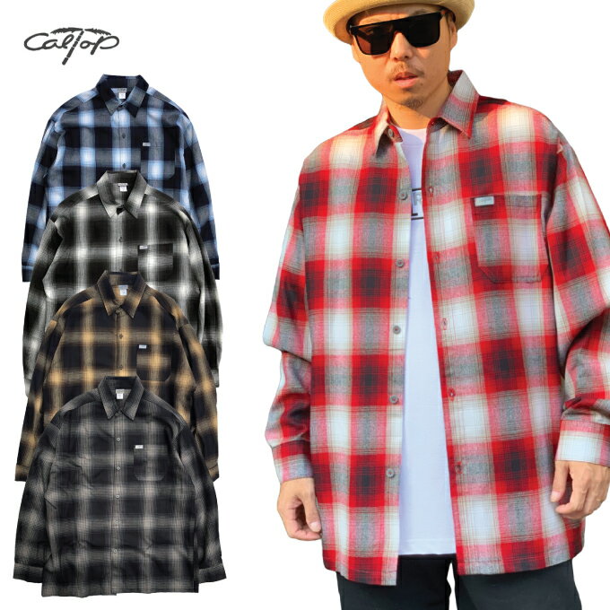 キャルトップ シャツ オンブレチェック【期間限定価格】CALTOP メンズ【クリックポスト発送】2000 OMBRE LONG SLEEVE SHIRTSネルシャツ 長袖 シャツレッド ホワイト ネイビー グレーブラウンカーキ ブラック チャコール ブルー グリーン