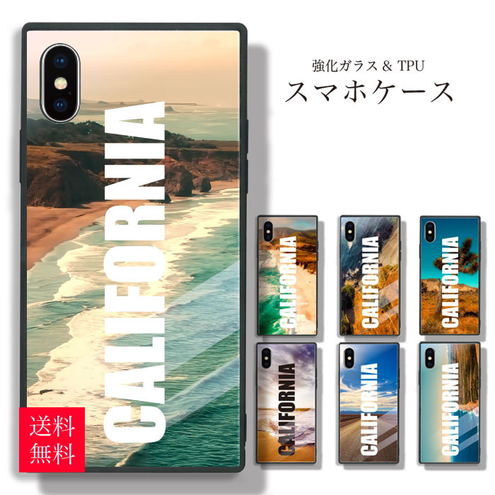 【※ブラックフライデー当店限定 ポイント5倍 ※ 11/20 20:00〜11/27 01:59】スマホケース iPhone x ケース iphone8ケース iPhone7 iPhone6s plus ハードケース 強化ガラス CALIFOENIA デザイン 高級感 スマホカバー 携帯ケース アイフォンケース スクエア型 四角 耐衝撃 背