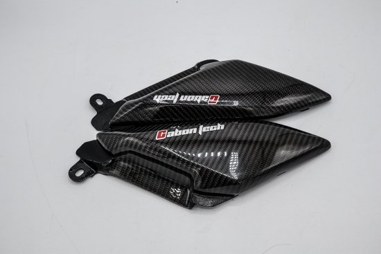 ■ご注文前に必ず下記ページをご確認ください。 ⇒「バイクパーツご購入に関する注意事項」 製品取り付けについての注意事項 生産製作時の乾燥工程により、稀に製品が歪んでいる場合がございます。 ドライヤー等で加熱し修正しながら取り付けが必要な場合がございますので、バイクカスタムのプロショップ等に依頼して取り付けてください。 ホンダ ADV150 CARBON TECH カーボン ロア ボディ カバー CARBON TECH製ロアボディカバー。純正部品を加工した製品になります。