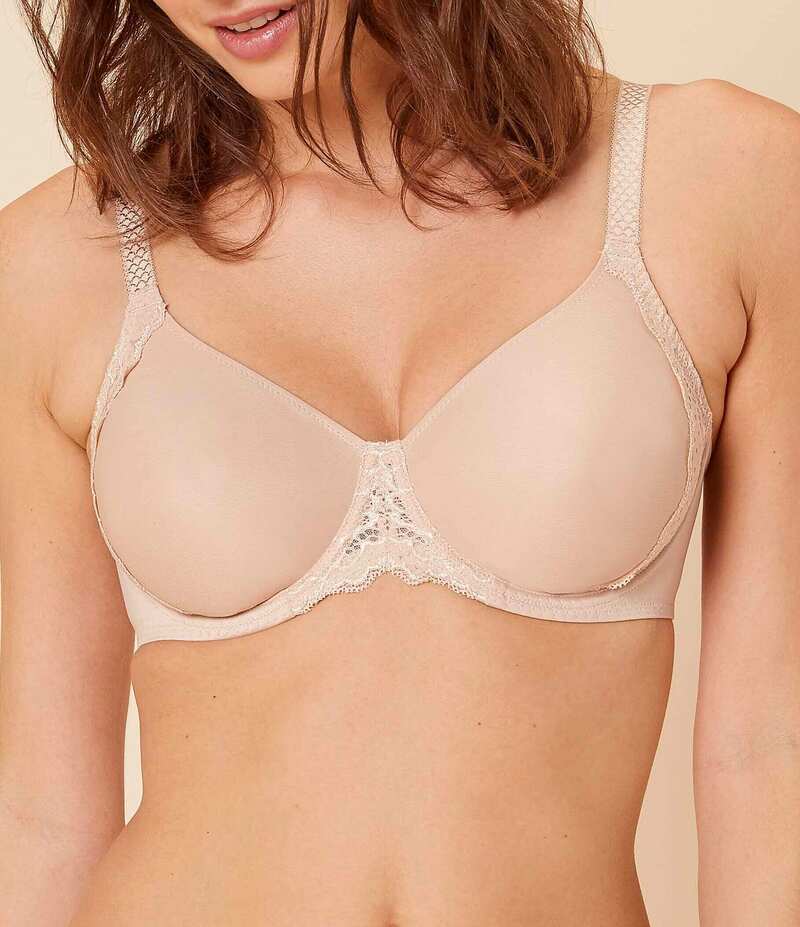 シモーヌペレール レディース アンダーウェア ブラジャー ミニ レース Simone Perele Caresse Ultra Firm Lace Accents Supportive Minimizer Bra Peau Rose