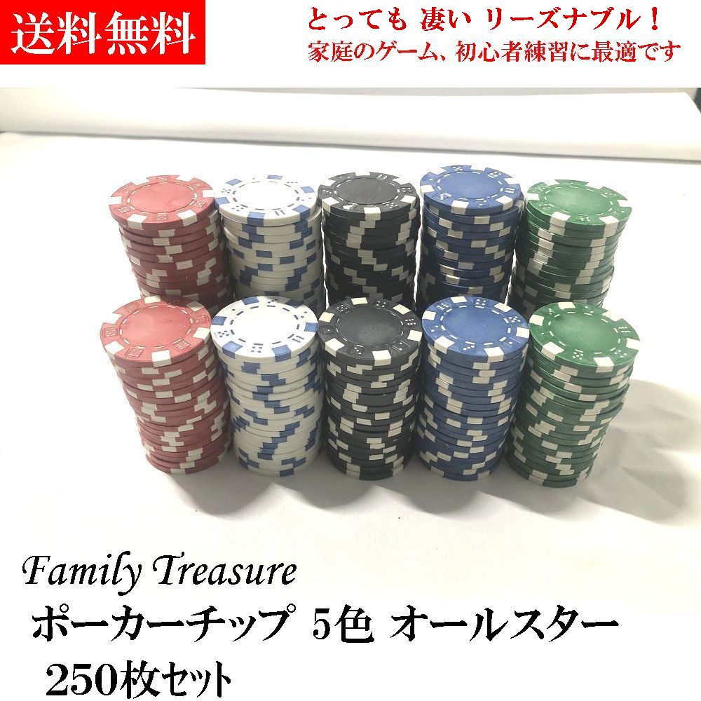 ポーカーチップ 【 とってもリーズナブル! 】【 送料無料 】ファミリートレジャー ポーカーチップ 250枚 5色オールスターセット(赤、青、黒、緑、白) ポーカーチップ ブランク ルーレットカジノ チップ コスト パフォーマンス 無地 ゲームチップ ポーカー カジノ