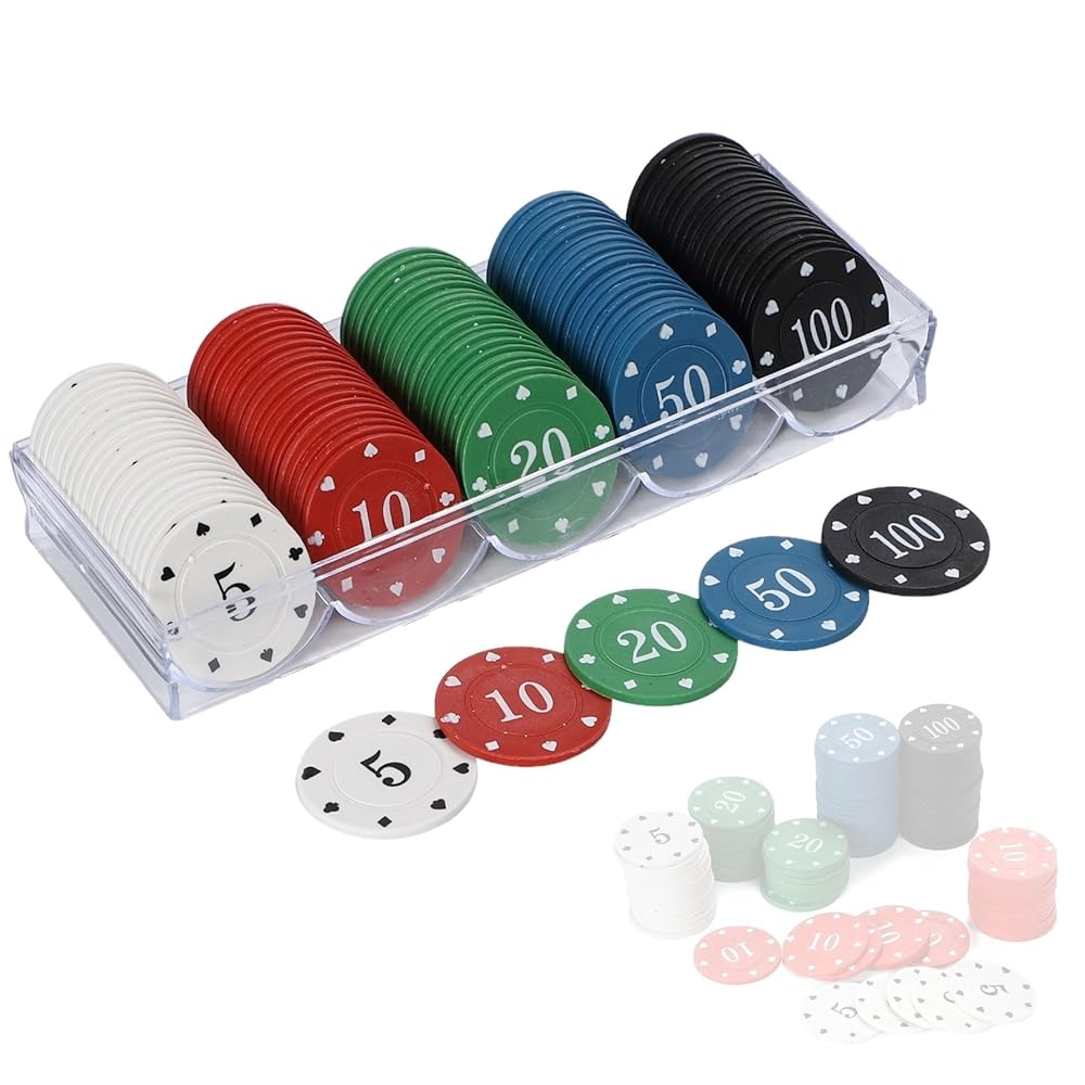 【楽天ランキング1位入賞】カジノチップ 100枚セット 5色アソート 収納ケース付き ポーカー 麻雀 ルーレット用 (ケース付き)