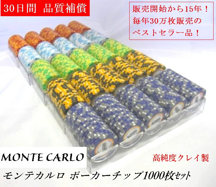 【モンテカルロ特別P3倍上乗せ!】【 本場 カジノ仕様 】モンテカルロ ポーカー チップ LOT-1000 セット — カジノチップ ポーカー チップ 、 カジノ 用品 チップ 1000枚 チップ セット チップ ラック 付 チップ ケース 送料無料 高級 カジノ チップ クレイ製