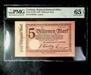 1923年 ドイツ REICHSBAHN CASSEL 5兆マルク PMG 65 GEM UNC