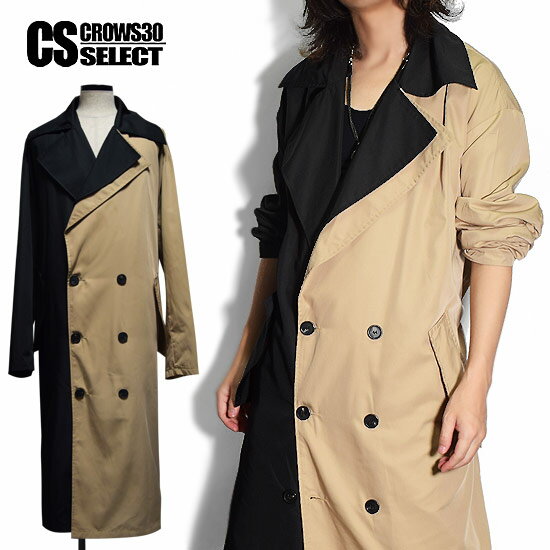 トレンチコート メンズ ロングコート モードファッション ガウンコート バイカラーコート 新作 アウター モード系 ロング丈 個性的 ロック お兄系 ホスト V系 ビジュアル系 衣装 ストリート系 オラオラ系 モード系 バイカラー ユニセックス レディース 送料無料 秋 冬 新作