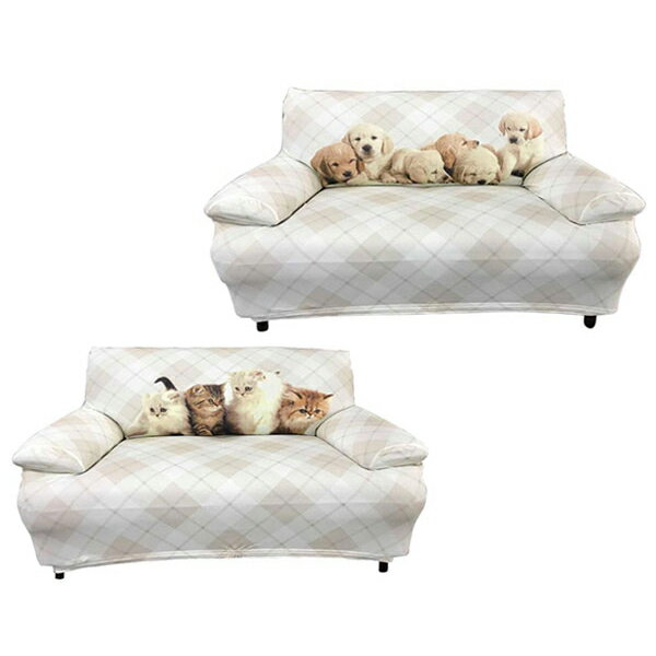 ソファーカバー 2人掛け プリントソファーカバー キャット 犬 デジタルプリント 伸縮 ストレッチ フィット おしゃれ 柄物(代引不可)【送料無料】