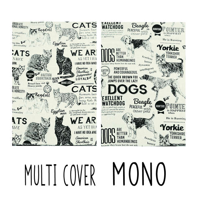 マルチカバー MONO ドッグ キャット 横150cm×縦225cm ■ ベッドカバー ソファカバー 目隠し 犬 猫 モノトーン ナチュラル イラスト アニマル 動物 おしゃれ