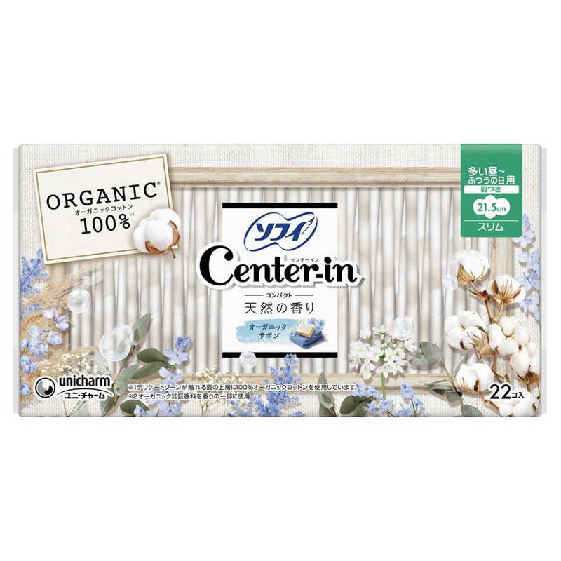 ユニチャーム|unicharm ソフィ Center-in(センターイン)コンパクト1/2 オーガニックサボン 多い昼用 羽つき 21.5cm 22枚