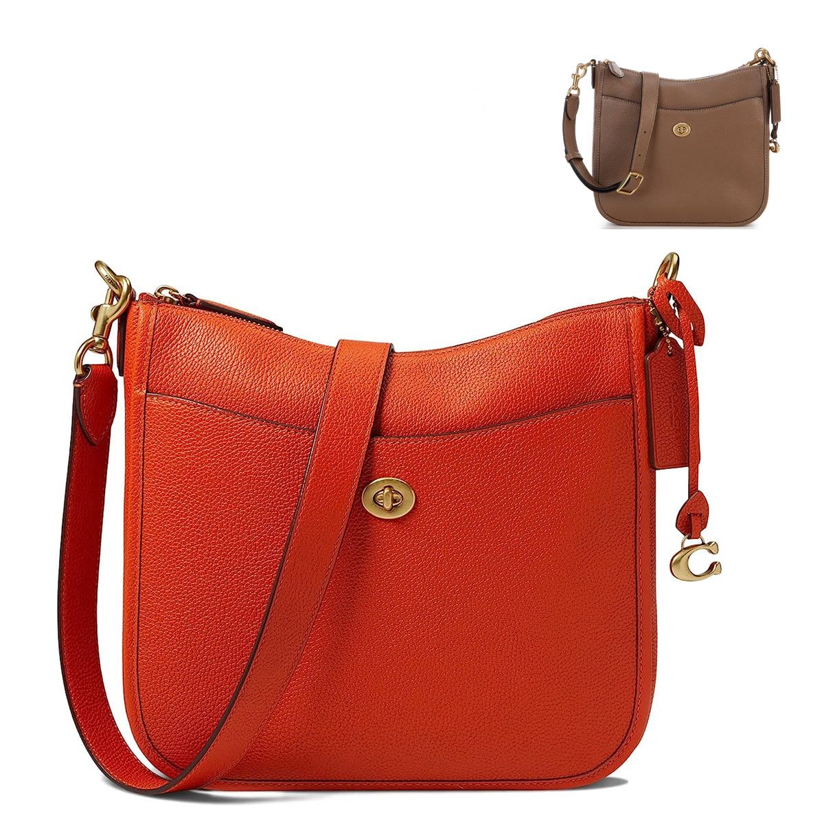 Coach コーチチェイス クロスボディ「シンプルで上質、丈夫で長持ち」で有名なUS高級ブランド。ミニマルでインパクトのあるChaiseは、ハンズフリーのお出かけにぴったり。洗練されたペブルレザーを使用した広々としたデザインで、便利なフロントスリップポケットはアイコニックなターンロック開閉式。● 商品名チェイス クロスボディChaise Crossbody● カラー全2カラー(Sun Orange, Dark Stone)● サイズ・横(約)26.6cm x 高さ(約)24.7cm x 幅(約)5.7cm・取り外し可能なストラップの長さ: (約)54.6cm● 素材Polished pebble leather ●商品詳細 ・内側スナップポケット・ジップトップクロージャー、裏地付き・外側にターンロックとジッパーポケット1941年にNYで開業した老舗ブランドコーチの名前の由来は乗り物を意味しており、馬車の代名詞であったハンガリーのコーチ (Kocs) という都市名からきています。大事なものを運ぶ際に使って欲しいという創始者の製品への想いが込められているそうです。偽物・コピー商品にご注意! 世界の人気ブランドは偽物・コピー商品の生産も盛んです。激安価格や偽公式サイトにはご注意ください。 当店の商品は『 100% 正規品保障! 』です。安心してお買い物をお楽しみください。COACH (コーチ)⇒ ブランドページはこちらから