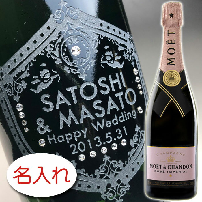 【名入れ彫刻 × スワロフスキー・ラインストーン デコレーション × モエ エ アンぺリアル ロゼ 750ml 正規 / 黒ギフト箱】moe MOET CHANDON Champagne 彫刻 ボトル シャンペン 名前入り 名前入れ オリジナル プレゼント ラベル ギフト レリーフ 結婚祝い