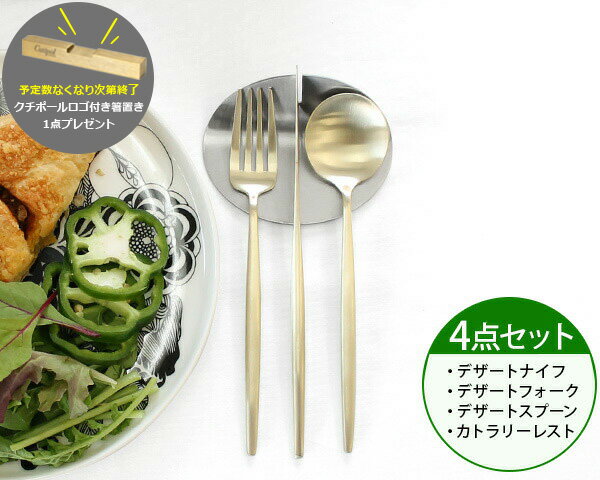 国内正規代理店 / <4点セット>クチポール ムーンマット シャンパンゴールド デザート3点(ナイフ・フォーク・スプーン)&カトラリーレスト1点 MOON MATT CHAMPAGNE [ネコポス対応可(4セットまで)] 【ブラッシュド マット】【食器 カトラリー】