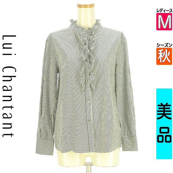 \14周年祭★全品15%OFFクーポン/ ルイシャンタン LUI CHANTANT ブラウス レディース 秋 長袖 グレー M ストライプフリルブラウス 【中古】【古着】【セール】楽天イーグルス感謝祭×P2倍