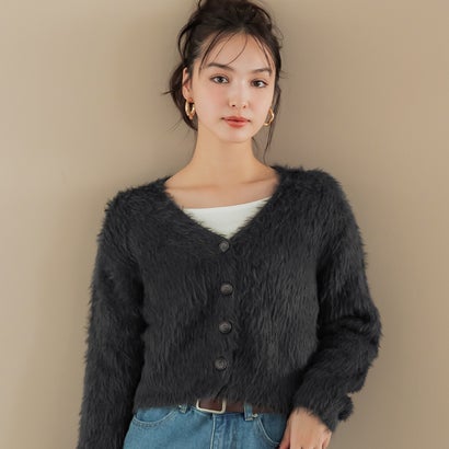 コカ coca ふんわりシャギーニットカーディガン (Charcoal)