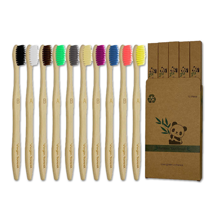 【最大2000円OFFクーポン】ヴィーガンフォレスト バンブー 歯ブラシ 大人用 木炭 ソフト 10本入り Virgin Forest Natural Bamboo Charcoal Toothbrushe