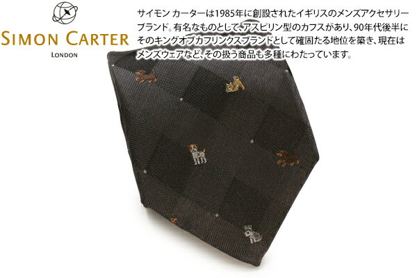【2025SSモデル】SIMON CARTER サイモンカーター DOG BLOCK CHECK CHARCOAL GREY SILK TIE 犬 ブロックチェック シルクネクタイ(チャコールグレー)【日本製】【ネクタイ タイ】【ブランド】 父の日
