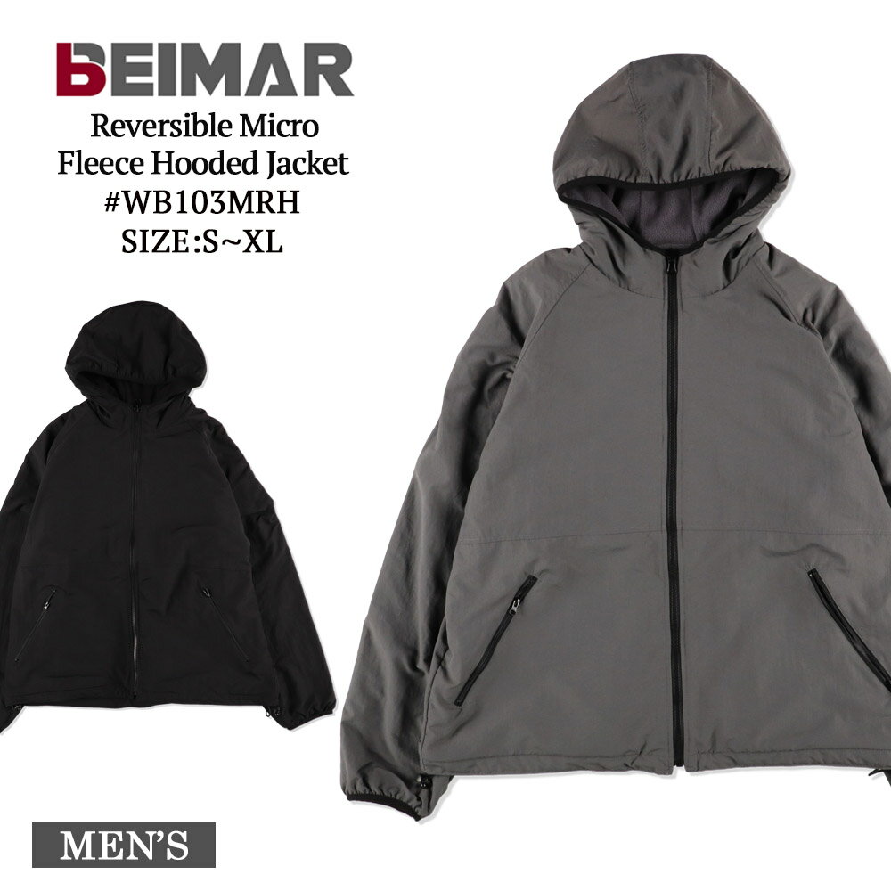 BEIMAR Reversible Micro Fleece Hooded Jacket ビーマー リバーシブル マイクロ フリース フーディッド ジャケット 別注 冬物 MENS メンズ 紳士用 アメリカ US ブランド 黒 チャコールグレー BLACK CHARCOAL GREY WB103MRH