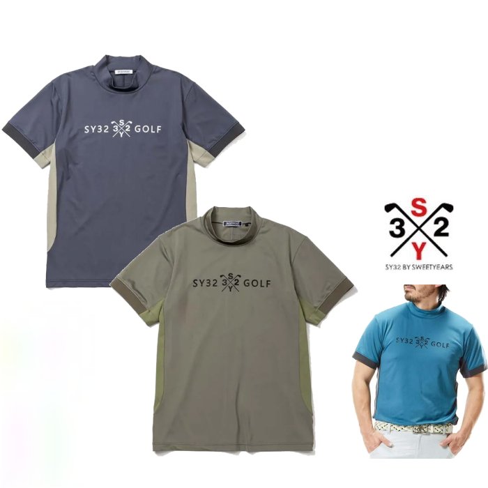 SY32 by SWEET YEARS ★ GOLF【 スィートイヤーズ 】SYG-25S021【 G-002 HIGH STRETCH MOCK 】ストレッチ・ロゴ半袖・モックネック・Tシャツcolor:【 OLIVE 】オリーブcolor:【 CHARCOAL 】チャコールグレー