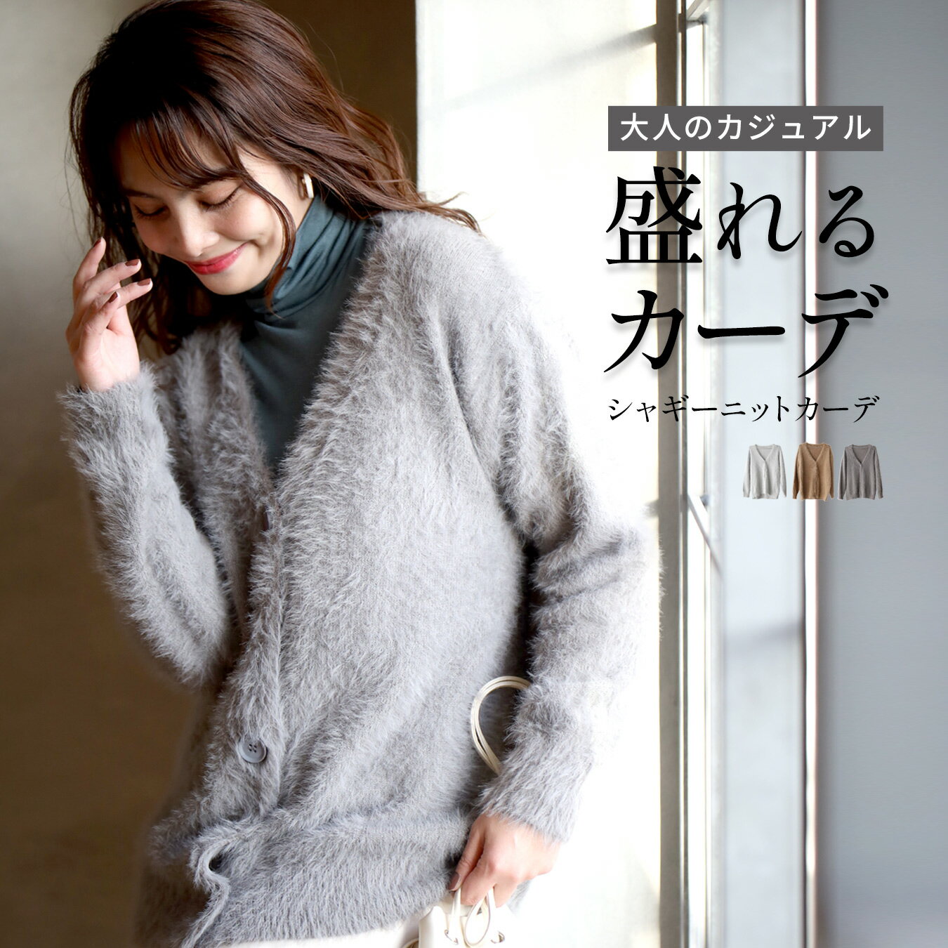 シャギーニットカーデ ニット カーディガンセーター カーデ シャギー フェザーヤーン ライトグレー ベージュ チャコールグレー gray beige charcoal 秋 冬 フリーサイズ レディース ファッション Ehre style エーレスタイル 小柄さんもOK Ehrestyle【F241217】【S251119】