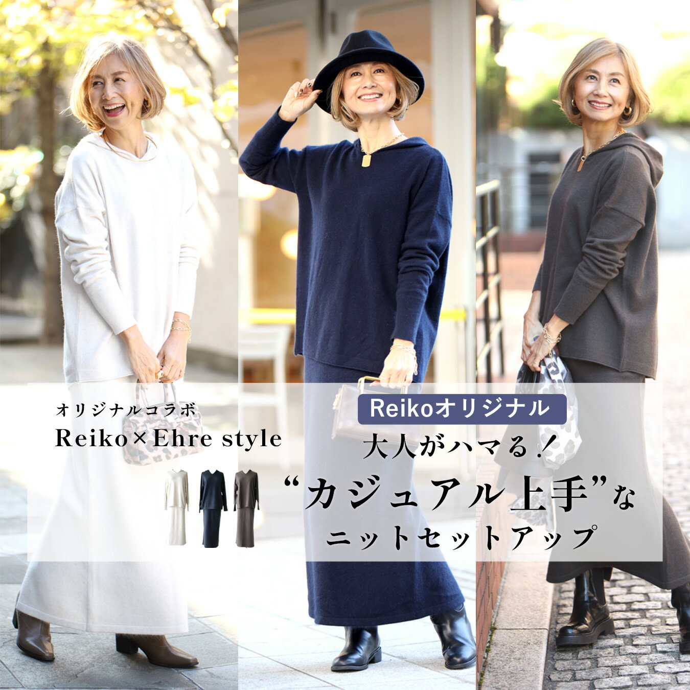 ニットセットアップ ニット スカート Reiko Abe コラボ ロングスカート ニットトップス セット 暖か セーター アイボリー ネイビー チャコールグレー ivory navy charcoal gray 秋 冬 秋冬M L レディース ファッション Ehre style スタイル エーレスタイル【F241204】