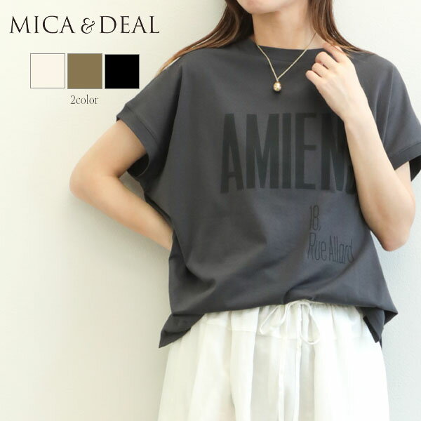 【MICA&DEAL/マイカアンドディール】ビッグロゴTシャツ レディース 半袖Tシャツ コットン100% 薄手 スリット入り クルーネック ドレープ感 大人カジュアル 0125209154 CHARCOAL チャコールグレー GRAY グレー WHITE ホワイト