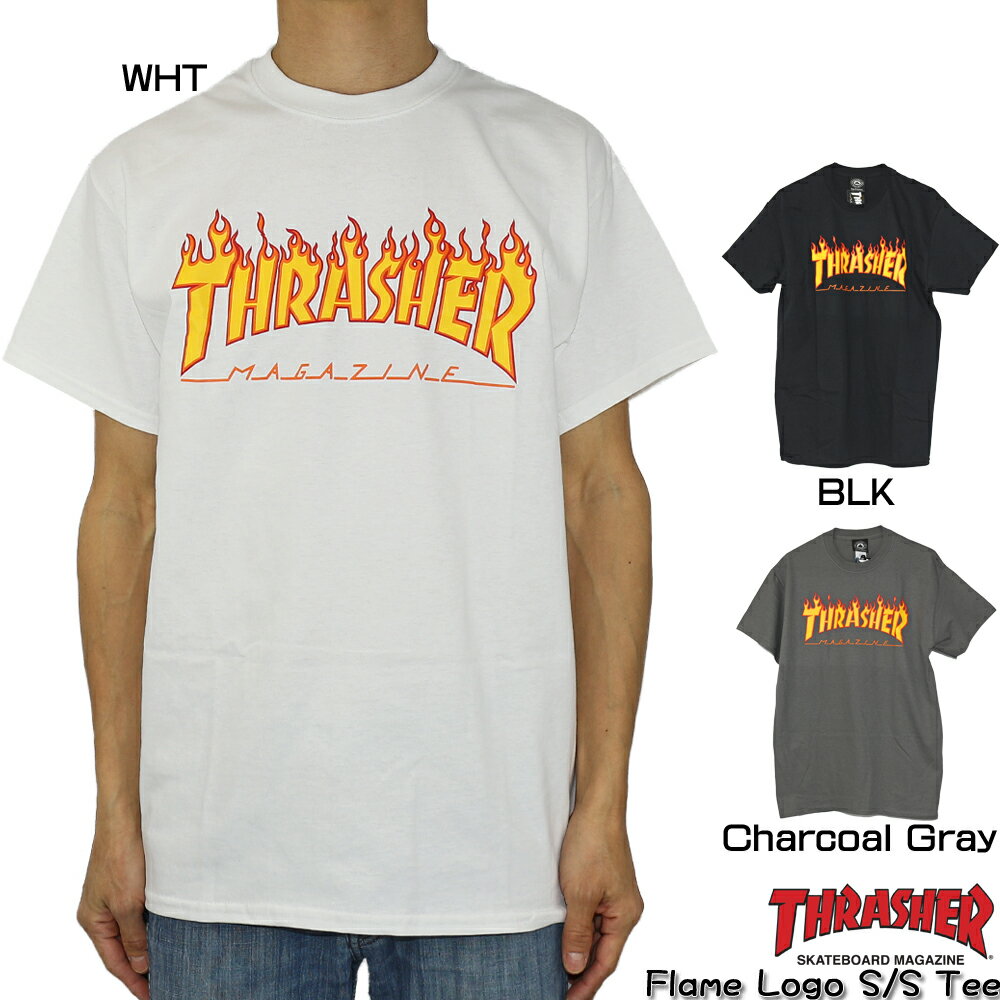 クリックポスト対応 スラッシャー THRASHER tシャツ Flame Logo S/S Tee WHT・BLK・Charcoal Gray フレーム ファイヤーパターン スケートボード スケボー スケート 半袖 Tシャツ