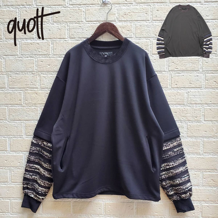 クオルト DAW-KNIT CUTSEW メンズ 長袖Tシャツ QUOLT カットソー クルーネック 裏地フリース 機能素材 ニット袖 フロントポケット ドローコード 長袖 Tシャツ コーデュロイニット生地 ユニセックス アウトドア フェス プレゼント CHARCOAL-GRAY BLACK グレー ブラック