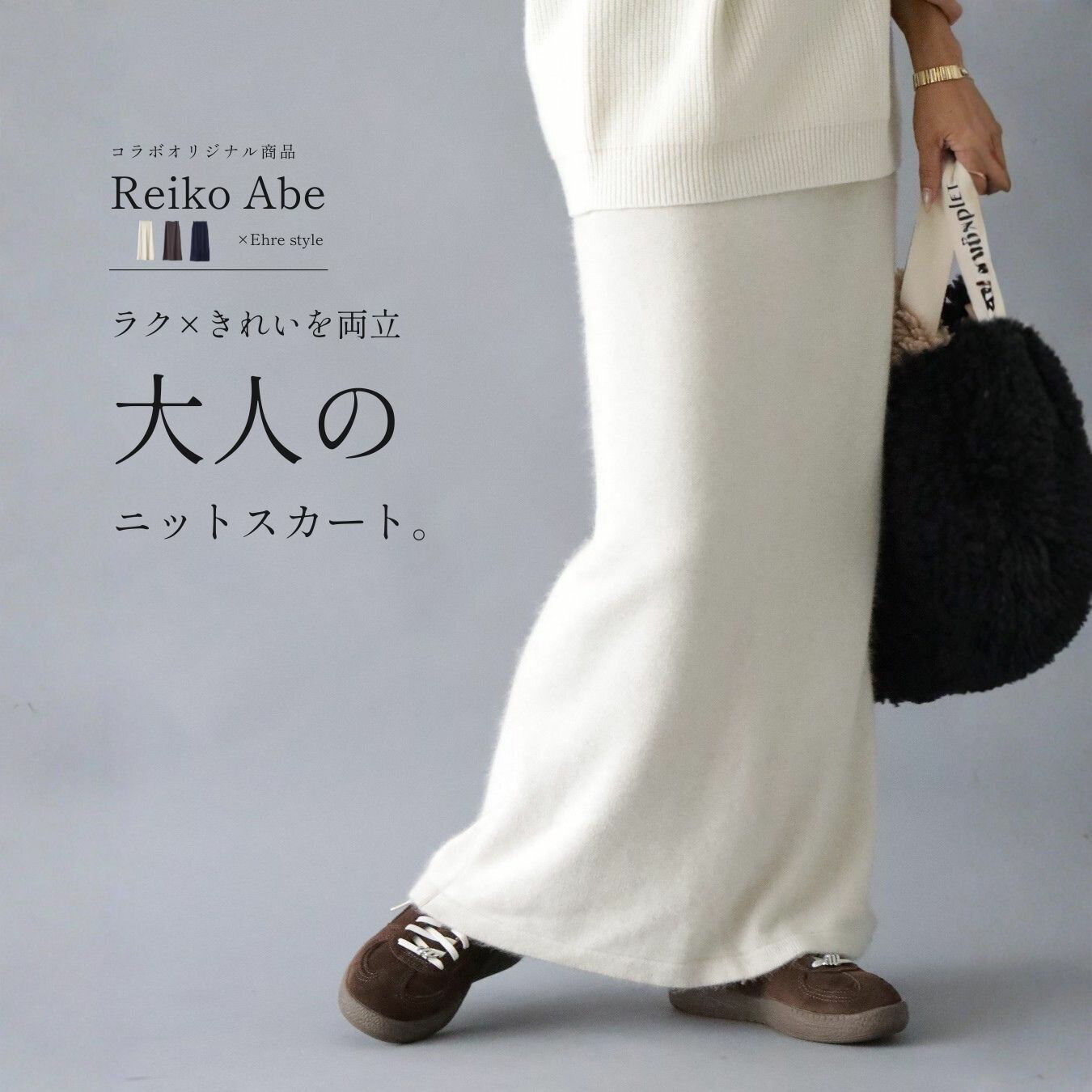 ニットセットアップ ニット スカート Reiko Abe コラボ ロングスカート ニットトップス セット 暖か セーター アイボリー ネイビー チャコールグレー ivory navy charcoal gray 秋 冬 秋冬M L レディース ファッション Ehre style スタイル エーレスタイル【F241204】