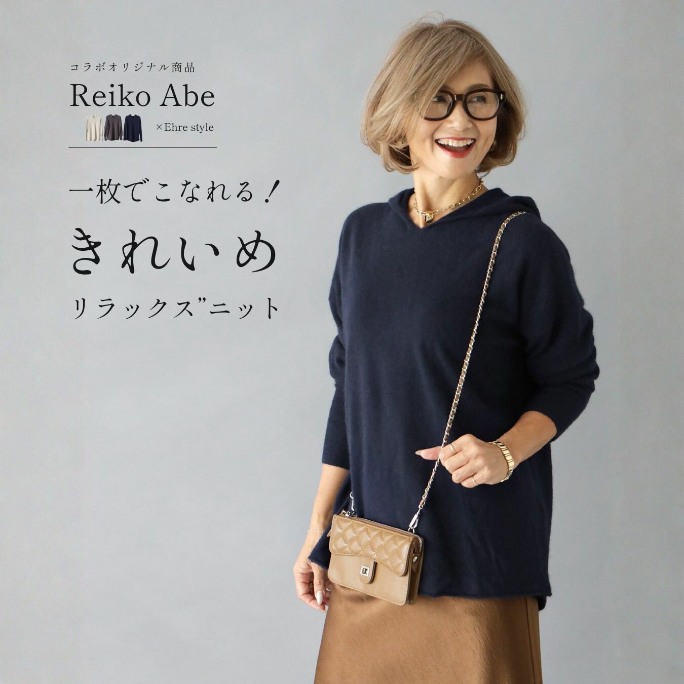 トップス ニット フード Reiko Abe コラボ 無地 ニットトップス ドルマン 暖か セーター 長袖 ゆったり アイボリー ネイビー チャコールグレー ivory navy charcoal gray 秋 冬 秋冬M L レディース ファッション Ehre style スタイル エーレスタイル【F241204】