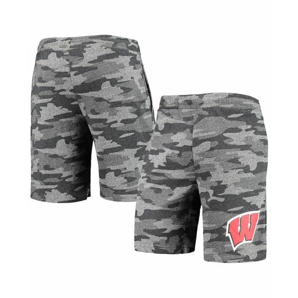 コンセプトスポーツ メンズ カジュアルパンツ ボトムス Men's Charcoal, Gray Wisconsin Badgers Camo Backup Terry Jam Lounge Shorts Charcoal, Gray