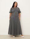 エイソス レディース トップス ワンピース シフォン マキシワンピース マキシ ASOS Curve ASOS DESIGN Curve puff sleeve chiffon maxi dress in charcoal Charcoal gray チャコール