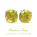 K14WG シャルトリューズ ミスティックトパーズ 5mm ラウンド スタッドピアス 14金 ホワイトゴールド