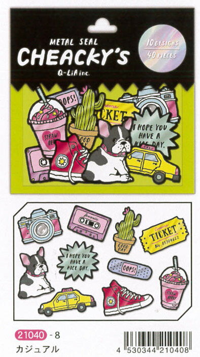 【CHEEKY'S】チーキーズ メタルフレークシール / カジュアル 21040 トレンド感あふれる「CHEEKY’S(チーキーズ)」シリーズから、 メタル素材のフレークシールが登場! カジュアルでポップなデザインにメタリックの輝きをプラス。 手帳・スマホ・ラッピングなどに貼るだけで、おしゃれ度がぐっとアップします。 【商品仕様】 内容:40枚入り シールサイズ:H40×W40mm以内 素材:メタル紙 生産国:中国 【特徴】 トレンド感あふれるカジュアルデザイン メタル素材の光沢でカッコよく仕上がる 手帳・スマホ・ノートのデコにおすすめ ラッピングにも映えるスタイリッシュなシール ※台紙デザインや内容は製造ロットにより若干異なる場合があります。 Mrs.Living のシール一覧を見る