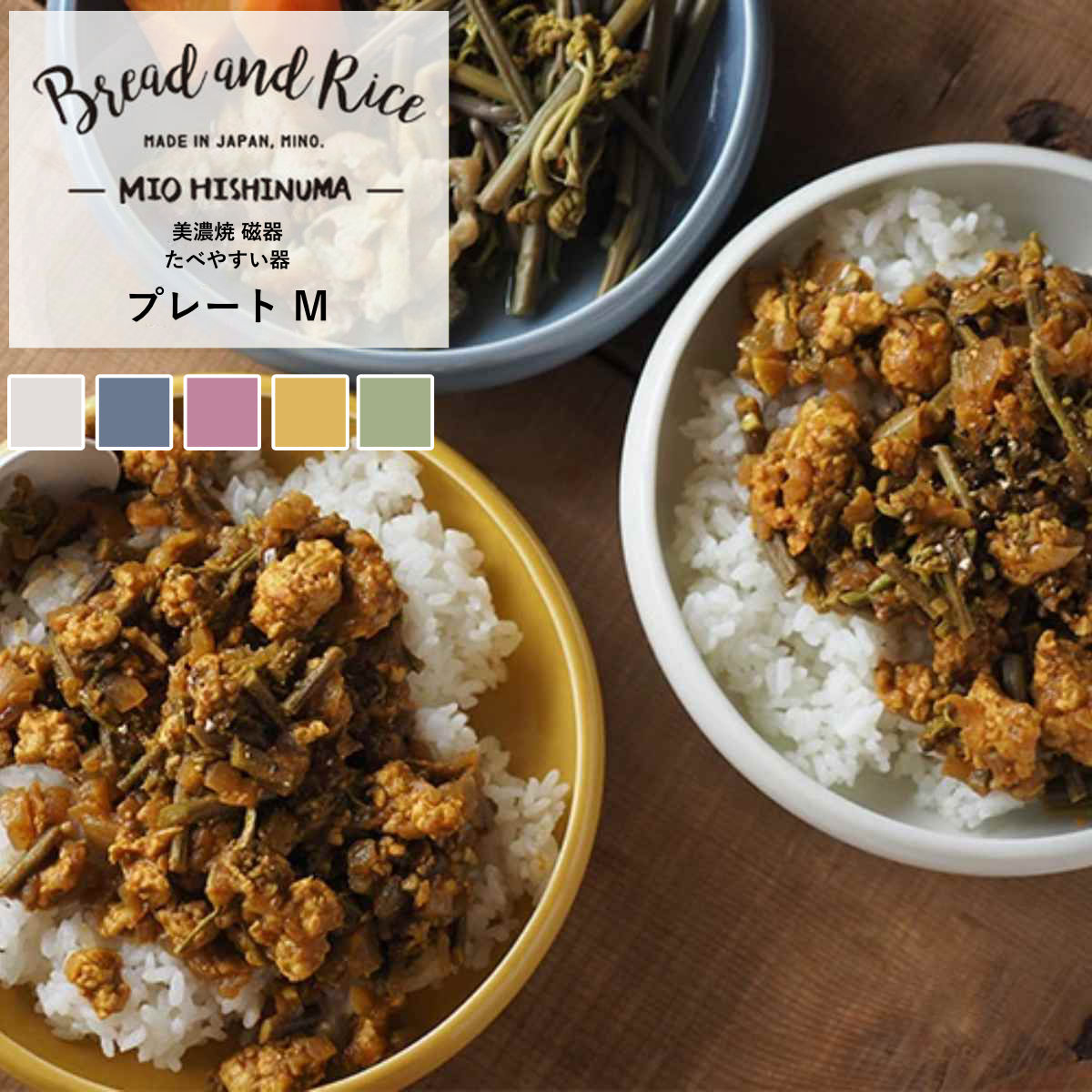 Bread and Rice (パンとごはんと...)美濃焼 まるい縁取りの陶器プレートL 直径25.5cm(Bread&Rice/菱沼未央さん/大皿/カフェ/ワンプレート陶器/CHIPS/引出物/贈り物 ギフト)