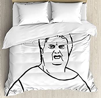 【中古】【輸入品・未使用】ユーモアインテリア布団カバーセットby Ambesonne、Chubby Guy Meme Fat怒った表情表示インターネット文字印刷、装飾寝具セットwithピロー、ブラ