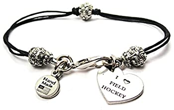 【中古】【輸入品・未使用】ChubbyChicoCharms I Love Field Hockey、ピュータービーズブラックワックスコットンコードブレスレット、2.5?%ダブルクォーテ%